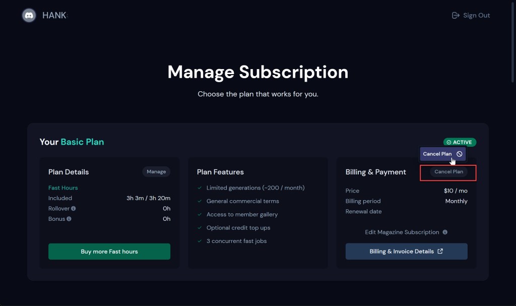 3. 點選 [Cancel Palan] 按鈕可以取消訂閱